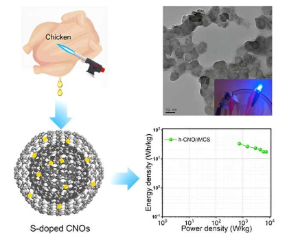 现在,ACS Applied Materials & Interfaces的研究人员报告了一种将鸡脂肪转化为碳基电极的方法,用于超级电容器存储能量并为 LED 供电。