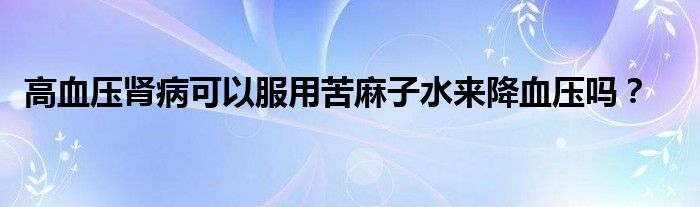 2、 高血压肾病,可以服用苦麻子水来降血压吗?苦麻子对肾会造成负担吗?