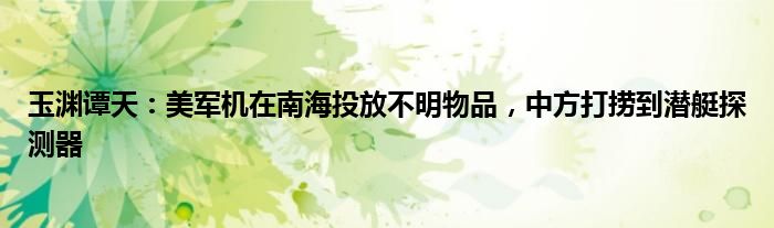 玉渊谭天:美军机在南海投放不明物品,中方打捞到潜艇探测器