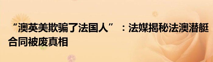 参考消息网6月27日报道据法国《费加罗报》网站6月24日报道,这是一桩证据确凿、不容争辩的控诉。在将于7月2日在澳大利亚出版的一本调查性著作中,记者安德鲁·福勒详细回顾了法国拿到的有史以来金额最大的军售合同遭遇取消的过程。澳大利亚、美国和英国欺骗了法国人,并未透露三方成立了遏制中国的澳英美联盟。