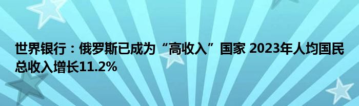 世界银行:俄罗斯已成为“高收入”国家 2023年人均国民总收入增长11.2%