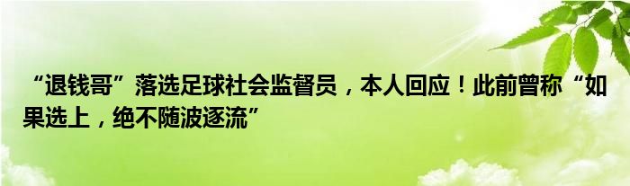 “退钱哥”落选足球社会监督员,本人回应!此前曾称“如果选上,绝不随波逐流”
