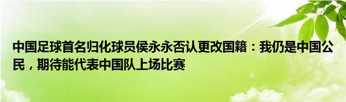 中国足球首名归化球员侯永永否认更改国籍:我仍是中国公民,期待能代表中国队上场比赛