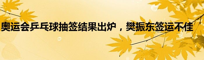 奥运会乒乓球抽签结果出炉,樊振东签运不佳
