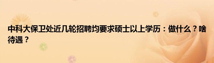 中科大保卫处近几轮招聘均要求硕士以上学历:做什么?啥待遇?