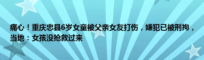 痛心!重庆忠县6岁女童被父亲女友打伤,嫌犯已被刑拘,当地:女孩没抢救过来