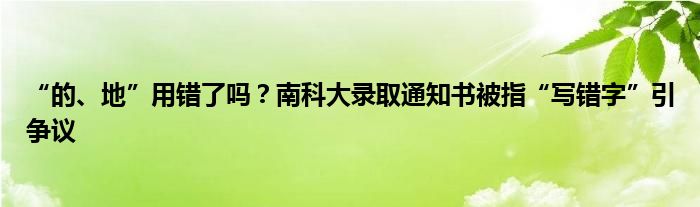 “的、地”用错了吗?南科大录取通知书被指“写错字”引争议