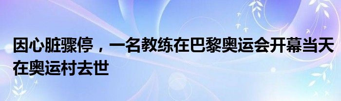 因心脏骤停,一名教练在巴黎奥运会开幕当天在奥运村去世