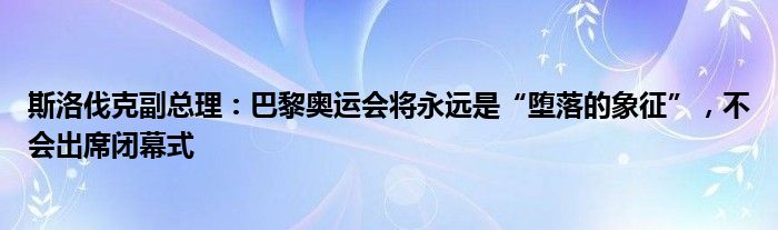 斯洛伐克副总理:巴黎奥运会将永远是“堕落的象征”,不会出席闭幕式