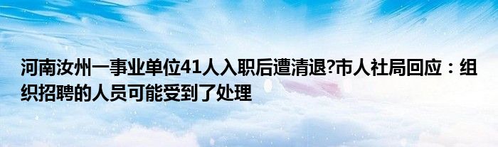 河南汝州一事业单位41人入职后遭清退?市人社局回应:组织招聘的人员可能受到了处理