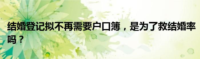 结婚登记拟不再需要户口簿,是为了救结婚率吗?