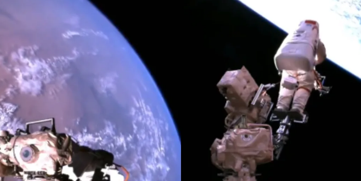 该画面是中国宇航员最近在天宫空间站进行太空行走时拍摄的。