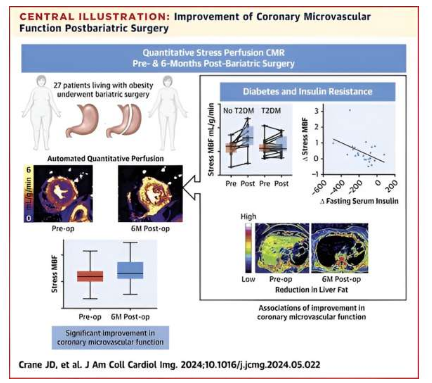研究人员在患者接受减肥手术之前和手术后六个月扫描了他们的心脏。研究小组使用了一种称为定量灌注磁共振成像的技术,该技术使他们能够测量心肌中最小血管的血流量。